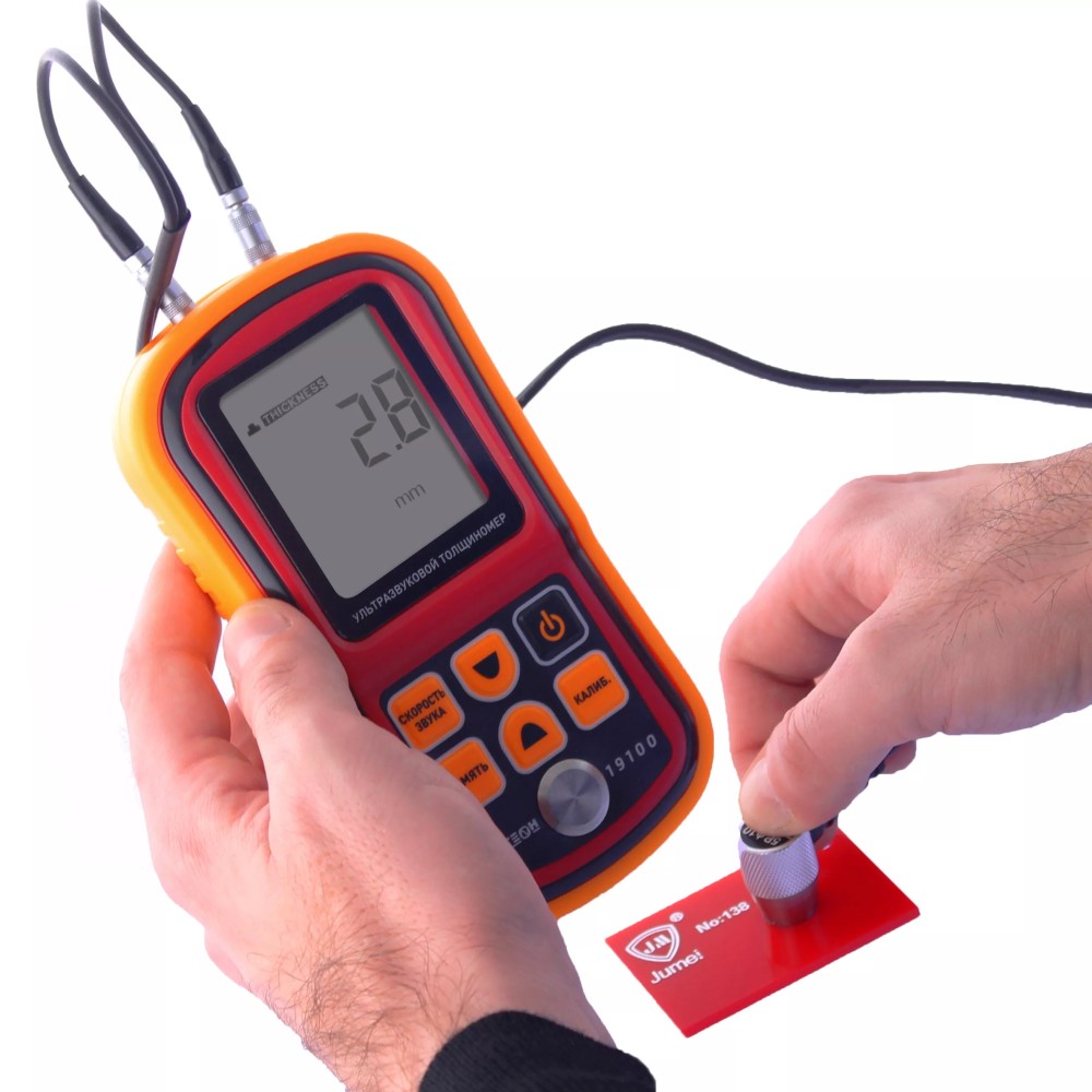 Диапазон измерения толщины составляет от 1,2 до 225 миллиметров, что позволяет использовать прибор для работы с широким спектром материалов. Прибор подходит для измерения толщины как небольших деталей, так и крупных объектов, таких как автомобильные детали или строительные материалы.