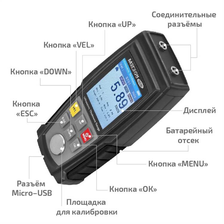 Благодаря компактным размерам и легкому весу толщиномер легко переносить и использовать. Питание осуществляется от трех Ni-Mh аккумуляторов, что обеспечивает мобильность прибора и независимость от источника питания.