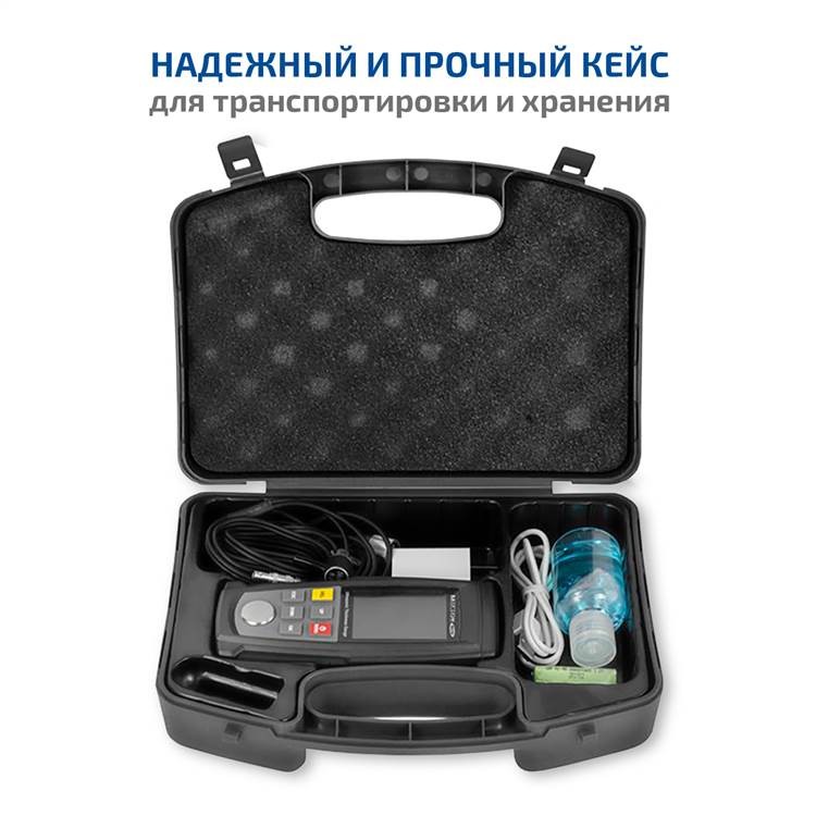 Предусмотрено 12 предустановок скорости звука для разных типов материалов, что облегчает процесс измерения и повышает точность результатов. Объем памяти прибора составляет 500 ячеек, что достаточно для хранения большого количества данных.