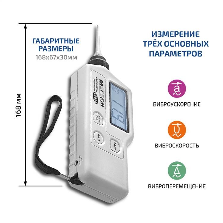 Виброметр МЕГЕОН 09630 - это устройство для измерения параметров вибрации, которое может быть полезно в различных сферах деятельности, где необходимо контролировать вибрационные процессы. Данный виброметр способен измерять три основных параметра вибрации: амплитуду, частоту и ускорение.
