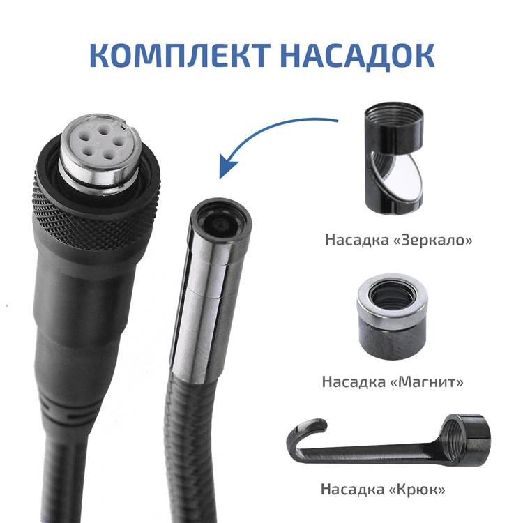 Одной из ключевых особенностей данного видеоскопа является его компактная и легкая камера диаметром всего 7,6 мм. Благодаря этому, устройство идеально подходит для работы в труднодоступных местах, где требуется высокая маневренность и точность. Диаметр зонда составляет 6,9 мм, а его длина достигает 5 метров, что дает возможность проводить исследования на глубине до 5 метров.