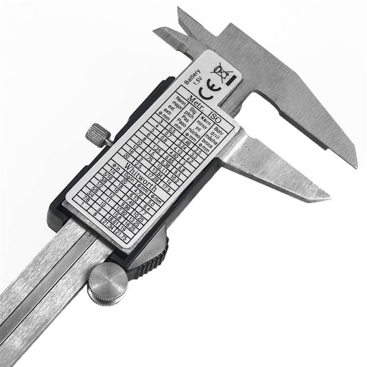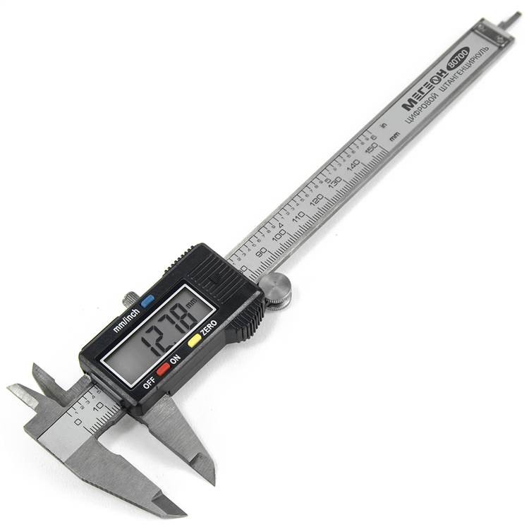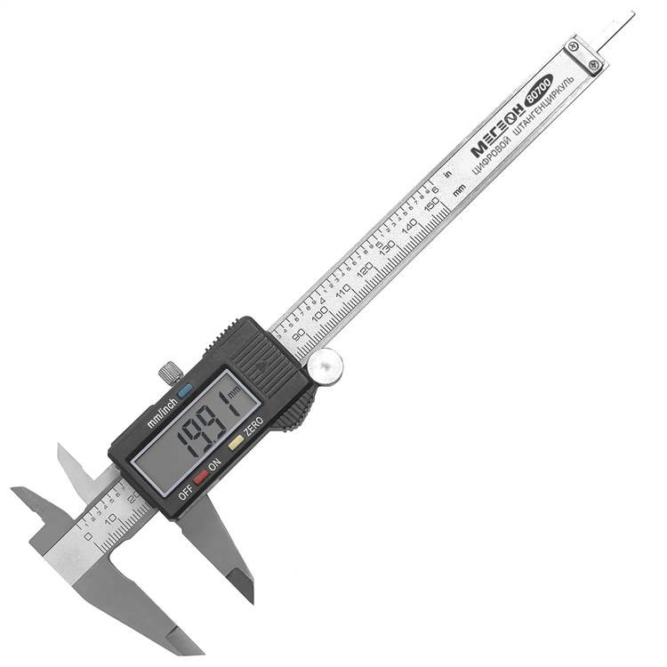 Для удобства использования штангенциркуль оснащен цифровым дисплеем, на котором отображаются результаты измерений в двух шкалах: метрической и дюймовой. Это обеспечивает гибкость и удобство при работе с различными объектами.