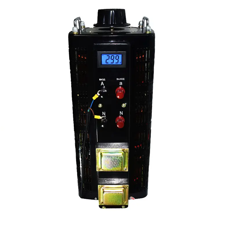 ЛАТР (лабораторный автотрансформатор) производства SUNTEK отличается отображением показаний выходного напряжения на Жидкокристаллическом (ЖК) табло (информативно и точно), плавным ходом ручки-регулятора, удобным креплением входных и выходных проводов, качеством сборки. ЛАТР SUNTEK позволяет изменять выходное напряжение от 0 Вольт до 300 Вольт с точностью до 1 Вольта.