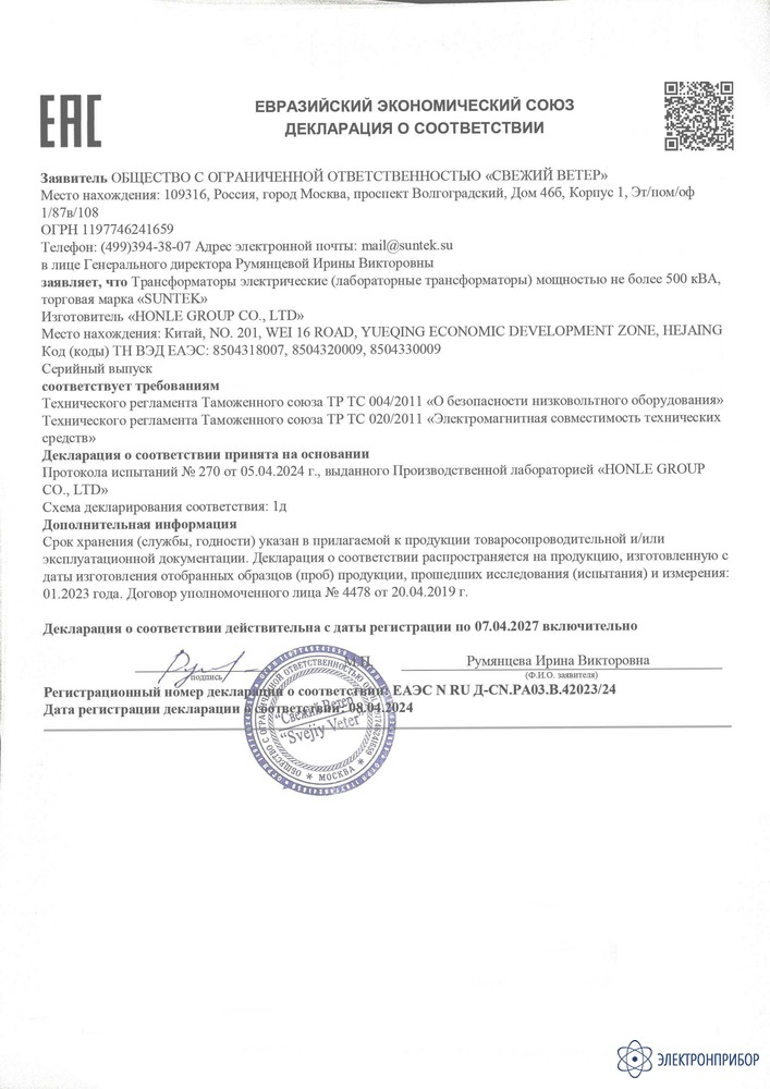 Документы ЛАТР SUNTEK 30000 ВА (40А):