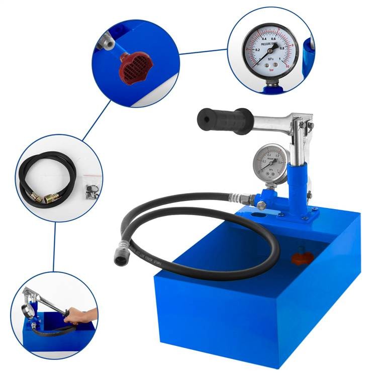 Резервуар для рабочей жидкости имеет объем 5 литров, что позволяет проводить продолжительные испытания без необходимости дополнительной заправки. Объем прокачки каждого хода штока составляет 10 куб. см, что обеспечивает быстрое создание необходимого давления.