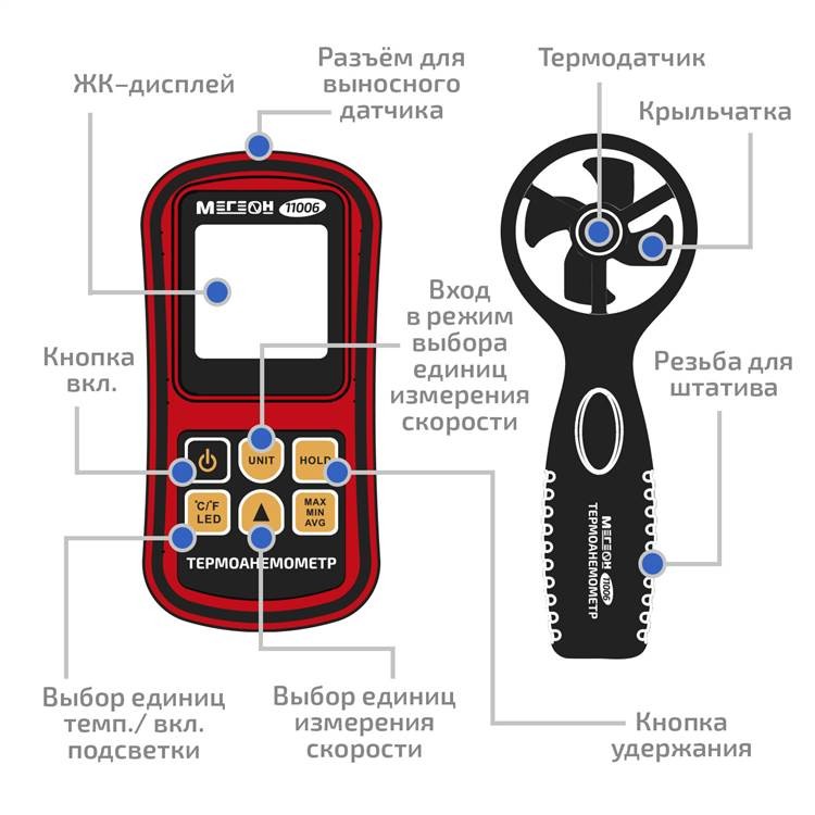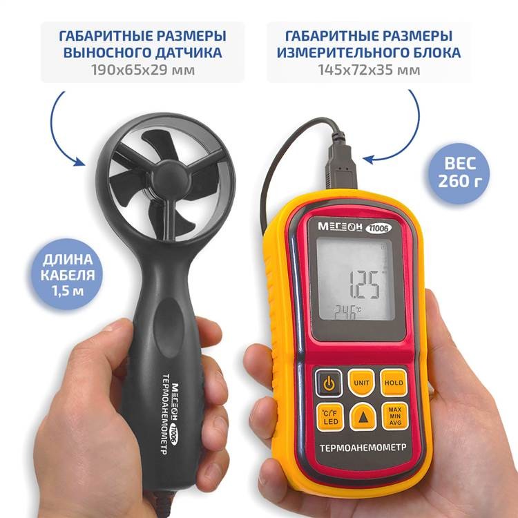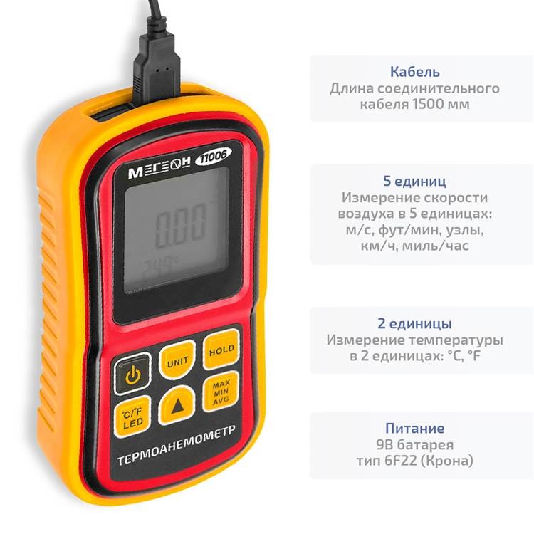 Кроме скорости ветра, анемометр также измеряет температуру воздуха, поддерживая две основные единицы измерения: градусы Цельсия и Фаренгейта. Это позволяет проводить комплексные исследования погодных условий и анализировать их влияние на окружающую среду.