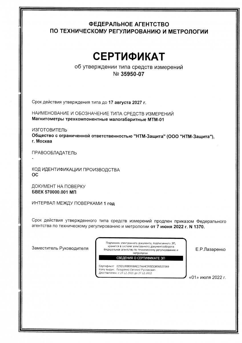Магнитометр трехкомпонентный малогабаритный - измеритель постоянного магнитного поля МТМ-01, предназначен для обеспечения измерений биологически опасных уровней геомагнитного и гипогеомагнитного поля по:
