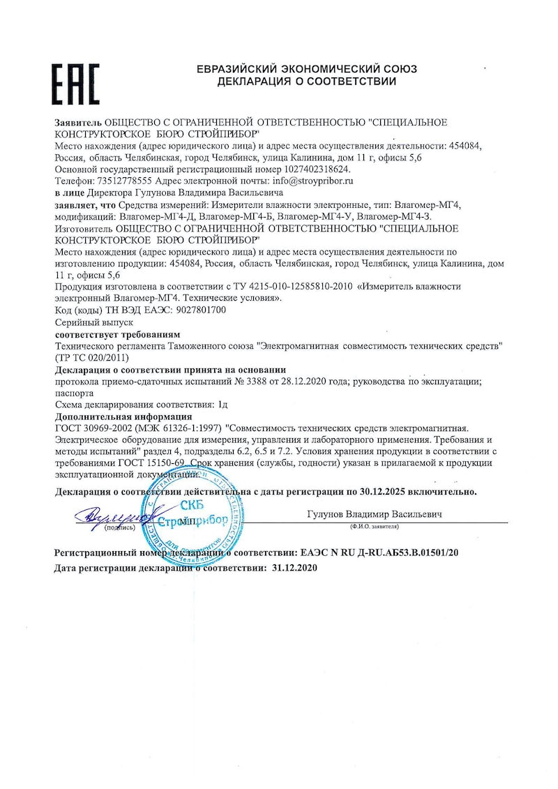 1. Прибор Влагомер-МГ4БМ - 1 шт.;
