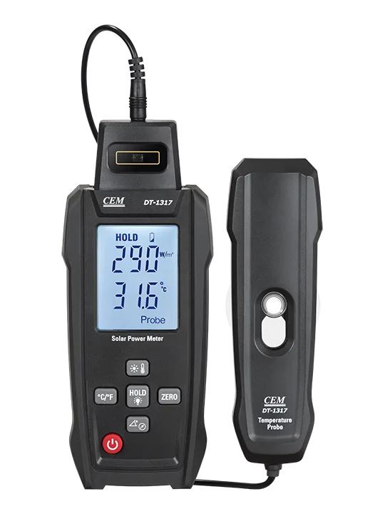 Измеритель интенсивности солнечного излучения был разработан, чтобы упростить установку, ввод в эксплуатацию и устранение неисправностей фотоэлектрических батарей, измерять температуру, наклон и направление солнечной батареи с помощью одного портативного инструмента. Прибор отличает компактный дизайн и легко читаемый высококонтрастный ЖК-экран для считывания результатов измерений под прямыми солнечными лучами.