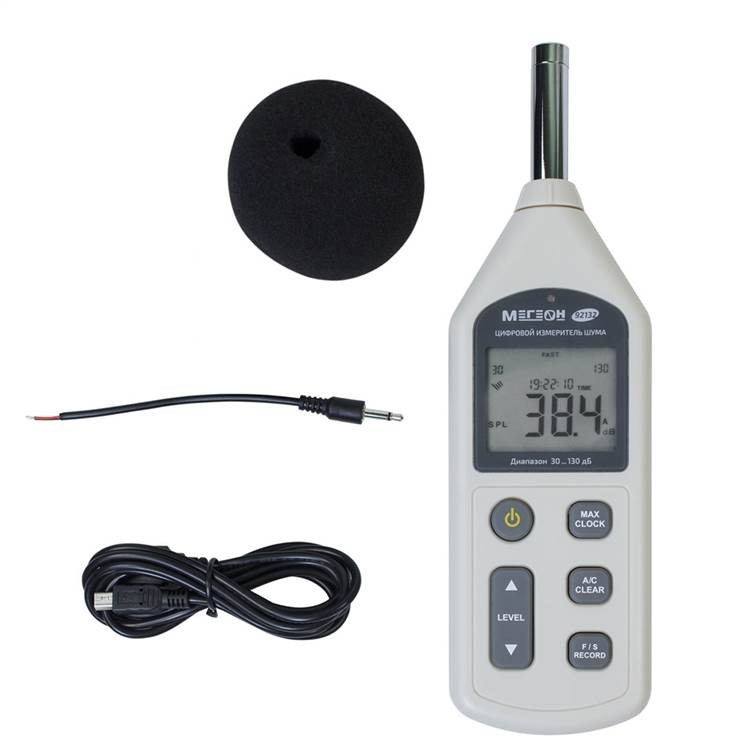 Новый шумомер МЕГЕОН 92132 представляет собой высокоточный измерительный прибор, используемый для точного и быстрого определения параметров звука в помещениях и на открытом воздухе. Данный прибор пользуется большой популярностью среди технических специалистов и инженеров, так как предлагает отличные технические характеристики и имеет малый вес и компактные габариты. Шумомер МЕГЕОН 92132 дает возможность производить измерения шума в широком диапазоне: от 30 до 130 дБ. Стоит отметить, что показатель погрешности при проведении измерений не превышает ±1,5 дБ. Прибор имеет встроенный разъем для подключения анализатора частот, благодаря которому пользователь может наблюдать исследуемый шум в виде графика. МЕГЕОН 92132 оснащен простым пользовательским интерфейсом. На дисплей одновременно выводится индикация уровня исследуемого звука в виде гистограммы и цифровом виде. Все элементы управления расположены на лицевой панели прибора. Прибор укомплектован USB кабелем, который дает возможность передавать полученные результаты на ПК для дальнейшего анализа. Простое управление, малый вес, а также компактные габариты делают данный измерительный инструмент незаменимым помощником, как в быту, так и на промышленных объектах.