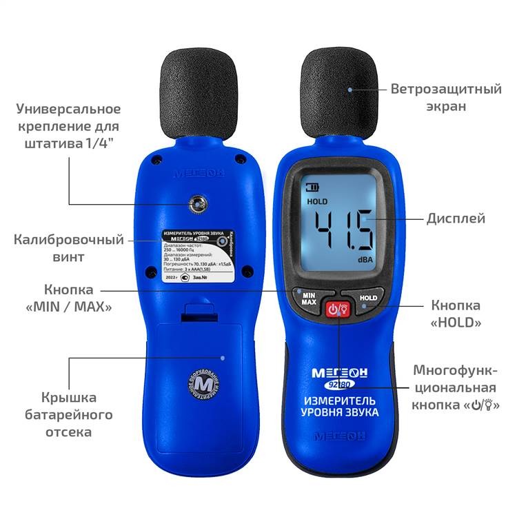 Измеритель уровня звука или шумомер МЕГЕОН 92180 - это точный и надежный инструмент для измерения уровня звукового давления. Благодаря высококонтрастному ЖК-дисплею, вы всегда будете иметь четкое и понятное отображение результатов измерений.