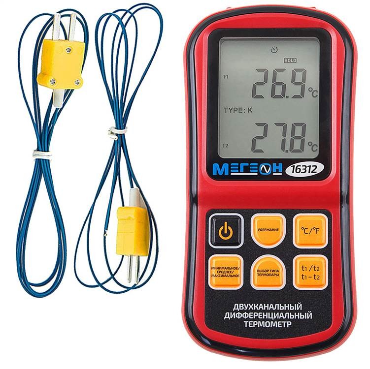 Для удобства пользователя в приборе предусмотрена возможность переключения между шкалами Цельсия и Фаренгейта. Кроме того, в комплект поставки входят две термопары, что позволяет начать работу с прибором сразу после его покупки.