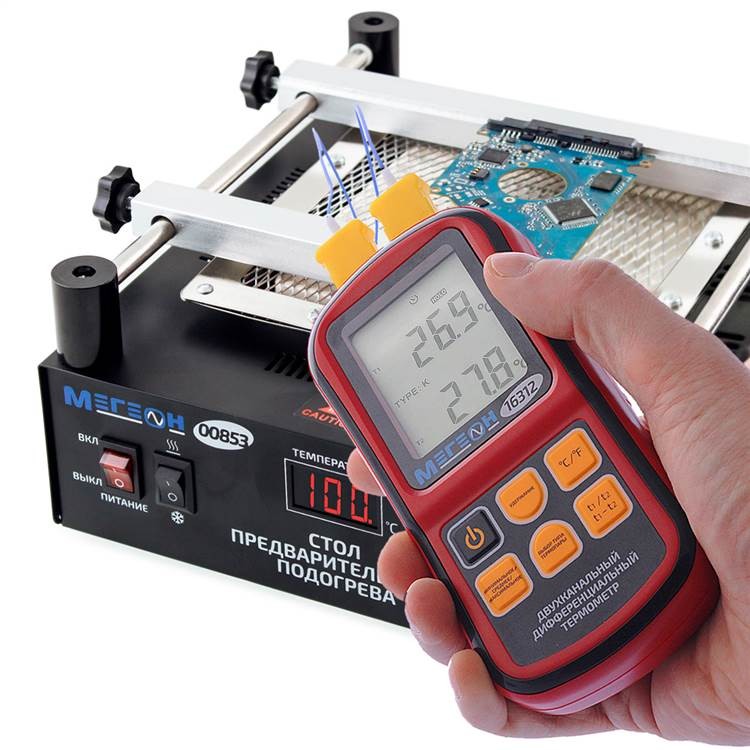 Для удобства пользователя в приборе предусмотрена возможность переключения между шкалами Цельсия и Фаренгейта. Кроме того, в комплект поставки входят две термопары, что позволяет начать работу с прибором сразу после его покупки.