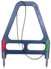 А-рамка (опция) обладает наиболее высокой чувствительностью, хорошо работает на низких частотах, которые дают возможность обнаруживать высокоомные повреждения. Расстояние между контактными штырями фиксировано, что повышает точность измерений. Однако особенности грунта не всегда позволяют применять А-рамку.