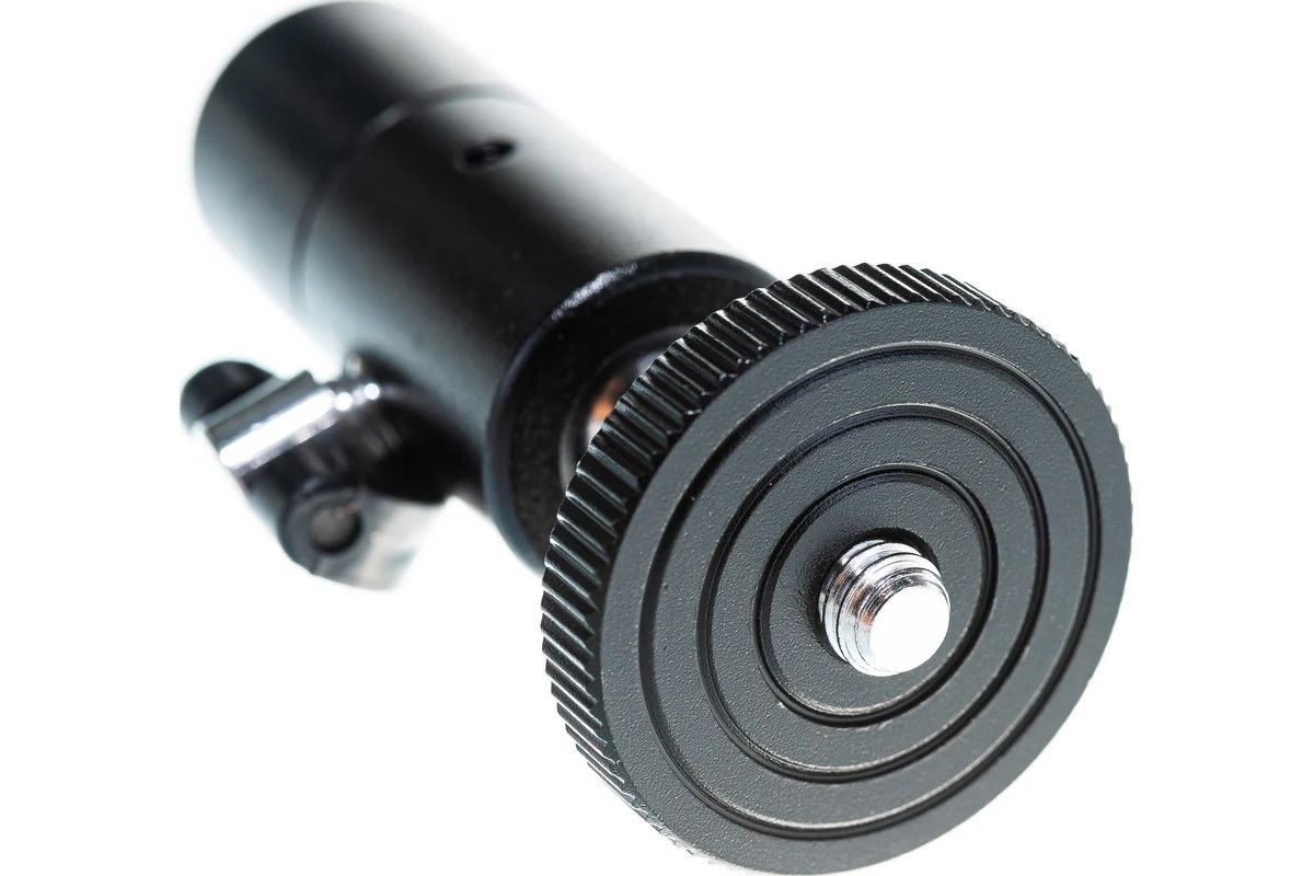 Адаптер ADA - аксессуар для прикрепления лазерных уровней к штативам и другим держателям при помощи резьбового соединения. Адаптер предназначен для закрепления лазерного уровня с присоединительной резьбой 1/4" к штативу, штанге с резьбой присоединения 5/8". Верхняя часть адаптера, предназначенная для закрепления уровня, имеет шарнирное присоединение, благодаря чему лазерный уровень можно развернуть на 360° и расположить под нужным углом. Все части приспособления - металлические.