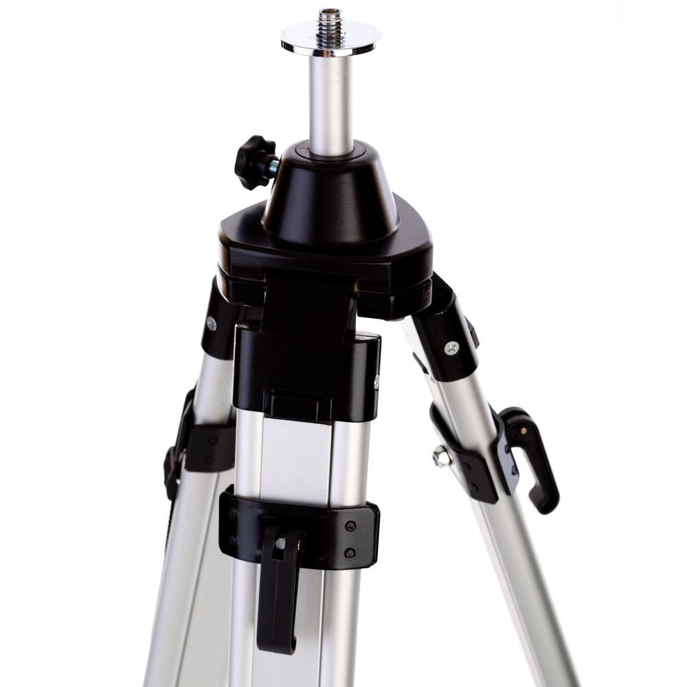 Штатив выполнен из алюминия и стали. Регулируемая колонка позволяет двигать вверх или вниз лазерный уровень, построитель лазерной плоскости или лазерный нивелир для точного наведения или перемещения "базовой-горизонтальной лазерной плоскости".