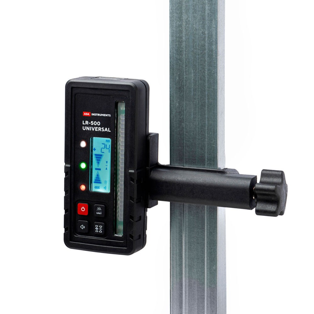 Универсальный приемник лазерного луча ADA LR-500 R/G модель приемника для работы с ротационными нивелирами с красным или зеленым лазерным лучом. Особенностью приемника является удлиненный чувствительный элемент, индикация уровня в миллиметрах.