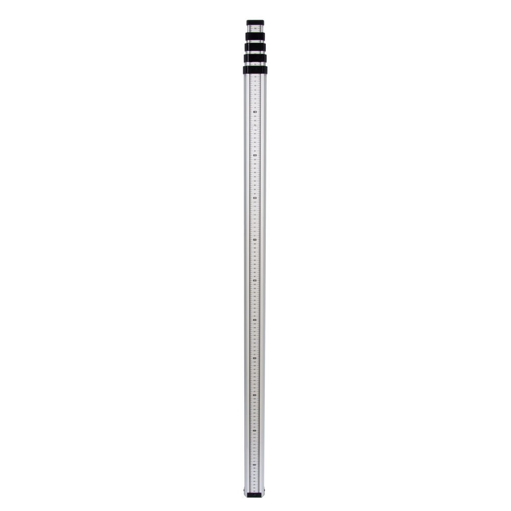 Наличие миллиметровой шкалы на обратной стороне расширяет возможности использования рейки, отсчет начинается от нижней части рейки. А с лицевой стороны нанесена стандартная красно-черная градуировка типа "Е".