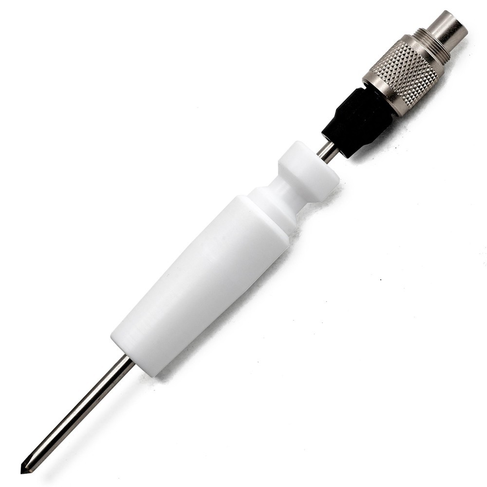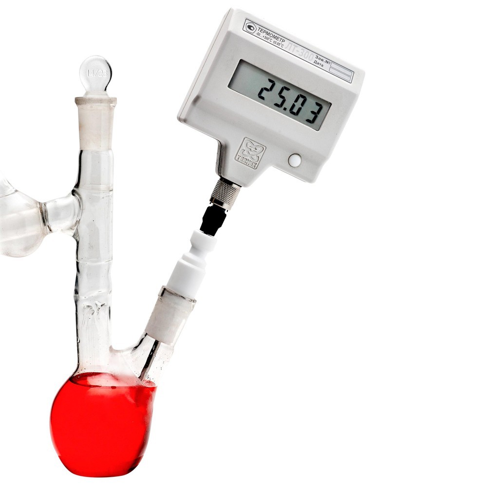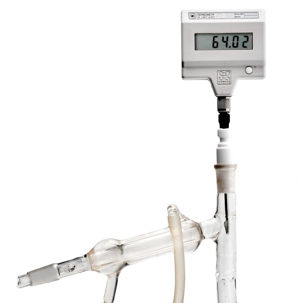 Держатель-пробка, изготовленный из тефлона, позволит надежно крепить датчик температуры электронных термометров ЛТ‑300 или ЛТИ в шлифах лабораторной посуды размером 14/23.