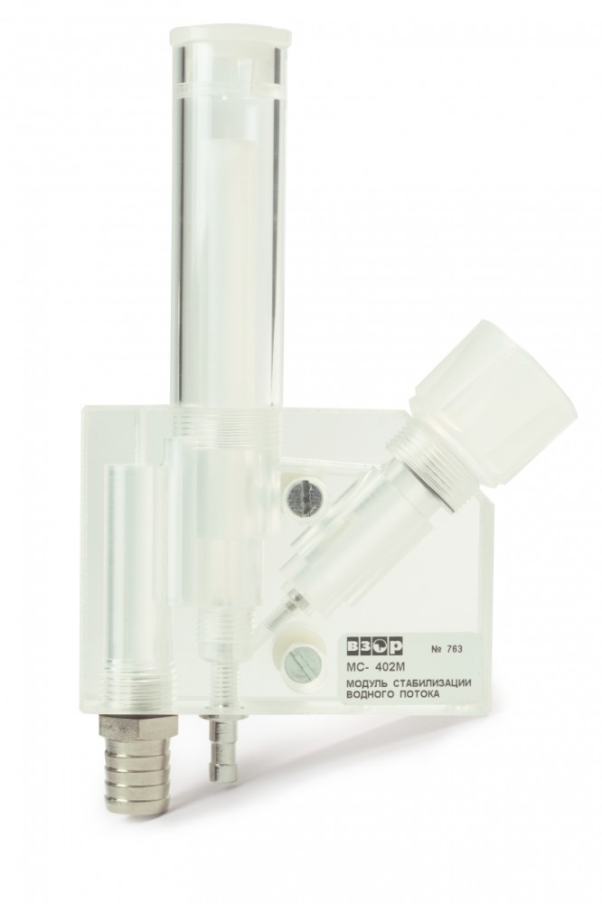 Модуль предназначен для создания оптимальных условий при измерении концентрации растворенного кислорода с помощью анализатора растворенного кислорода МАРК-409 с датчиками кислородными ДК-409, и при измерении концентрации растворенного водорода с помощью анализаторов растворенного водорода МАРК-501 и МАРК-509, уменьшения погрешности измерения и вероятности выхода датчика из строя при большой скорости потока воды.