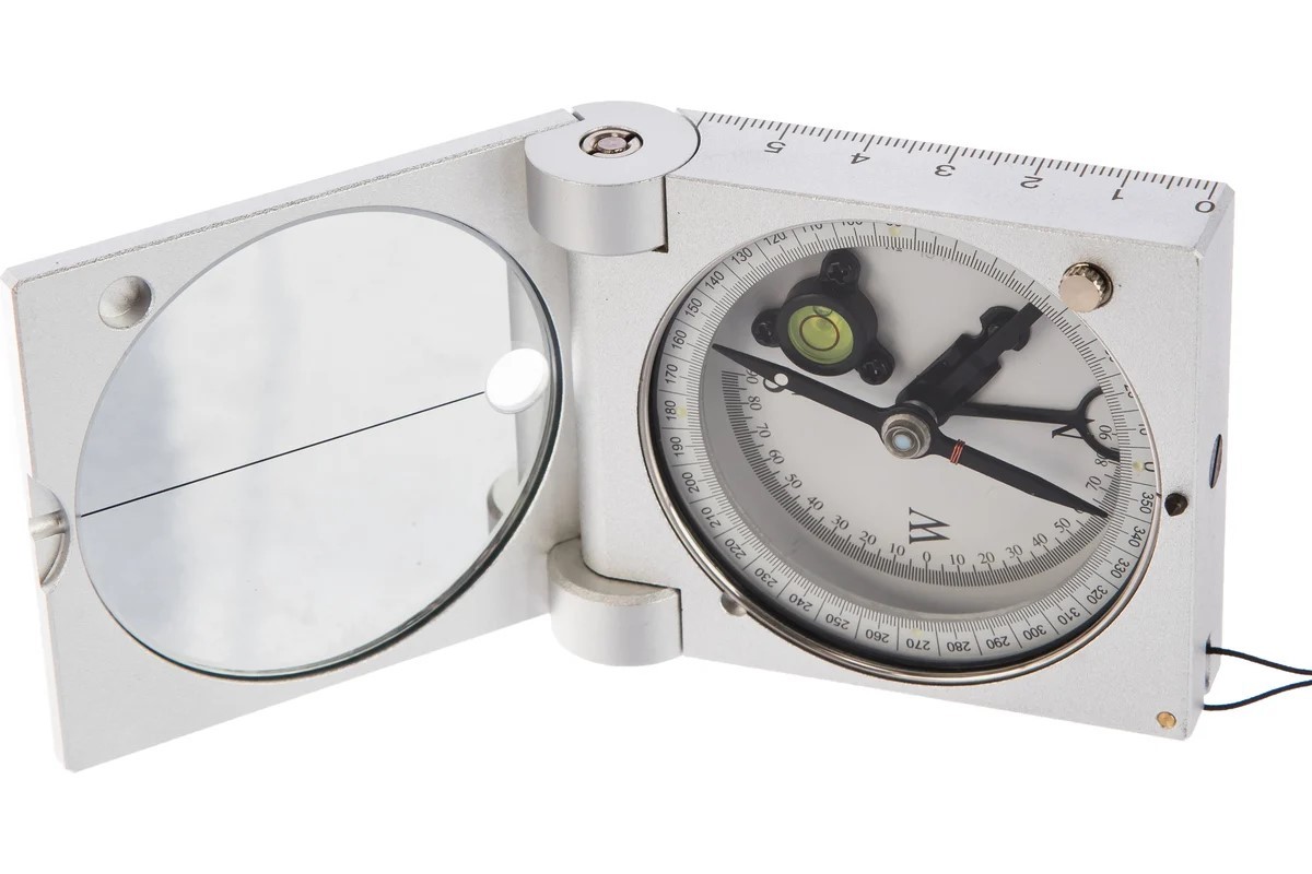 С помощью этого компаса можно выполнять замеры магнитного азимута простирания пласта и угла падения при геологических изысканиях. При ориентировании на местности он помогает определить магнитный азимут направления и угол наклона.