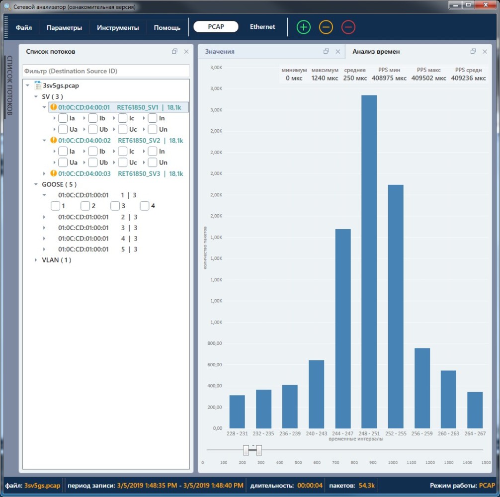 Статистический и временной анализ SV-потоков и GOOSE-сообщений