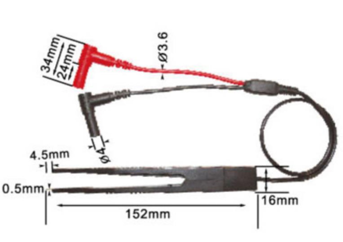 Щуп-пинцет предназначен для работы с SMD компонентами. Щуп-пинцет имеет изоляцию из ПВХ и угловые укрытые в корпус однополюсные штепселями (типа "банан").