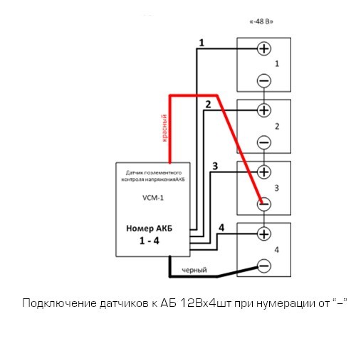 - подключение: один датчик подключается к четырем аккумуляторам (моноблокам) группы АКБ;