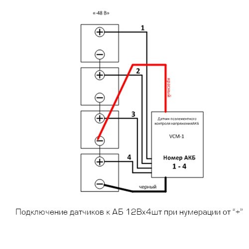 - подключение: один датчик подключается к четырем аккумуляторам (моноблокам) группы АКБ;