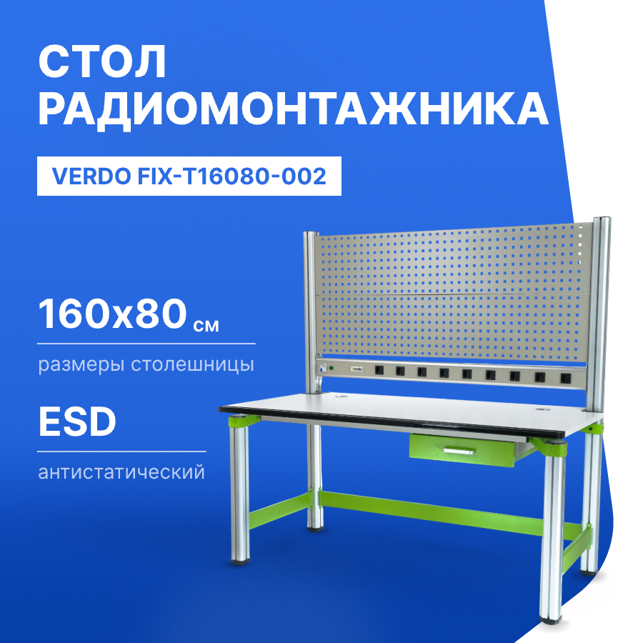 1. VERDO FIX-T16080-002 стол радиомонтажника антистатический, 1600х800х1600, выдвижной ящик - 1 шт.