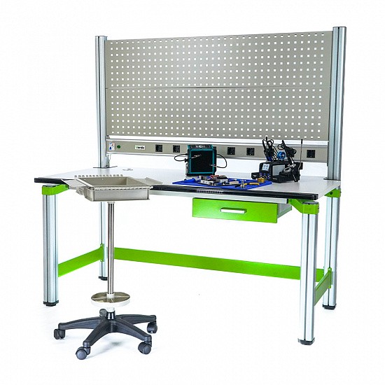 - Металлическая конструкция с основанием-крестовиной из прочного ABS-пластика и усиленными стальными креплениями;Удобное хранение кабелей и пробников;Отсек с ячейками для хранения