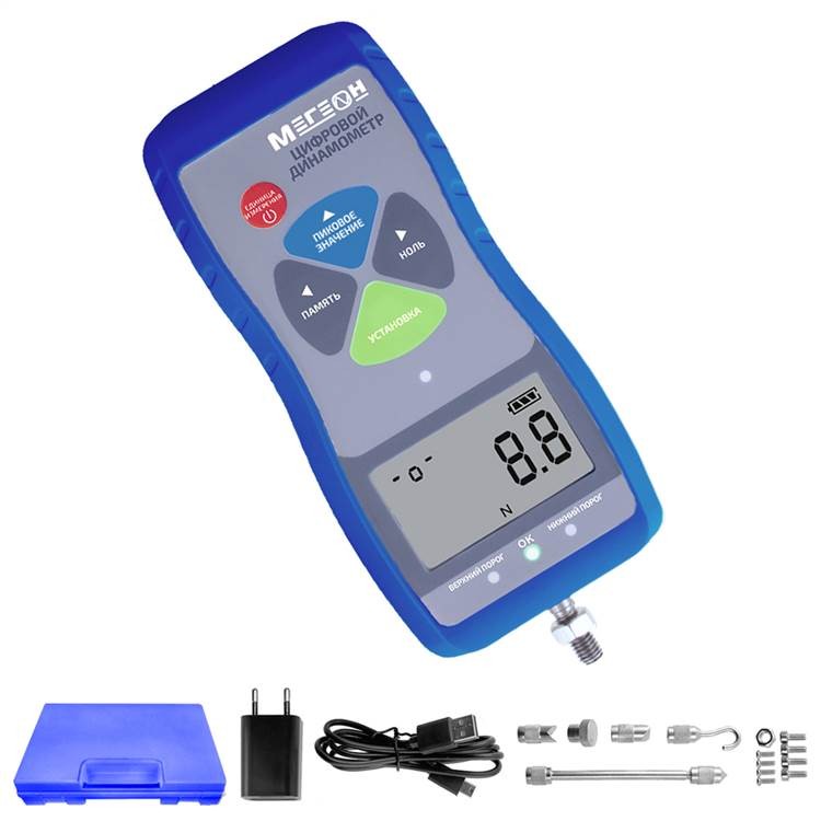 Одной из главных особенностей данного динамометра является функция фиксации пиковых значений, которая позволяет с высокой точностью определить максимальное усилие, действующее на исследуемый объект, и контролировать его поведение при экстремальных нагрузках.