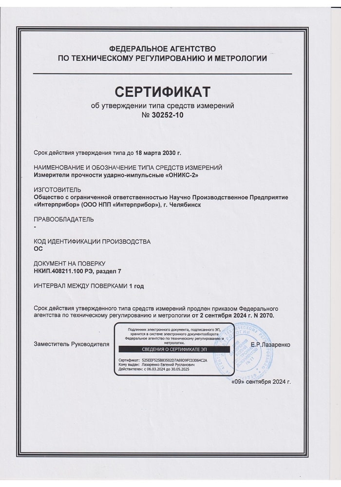 2. Датчик-склерометр, универсальное исполнение (диапазон прочностей 1...100 МПа) - 1 шт.;