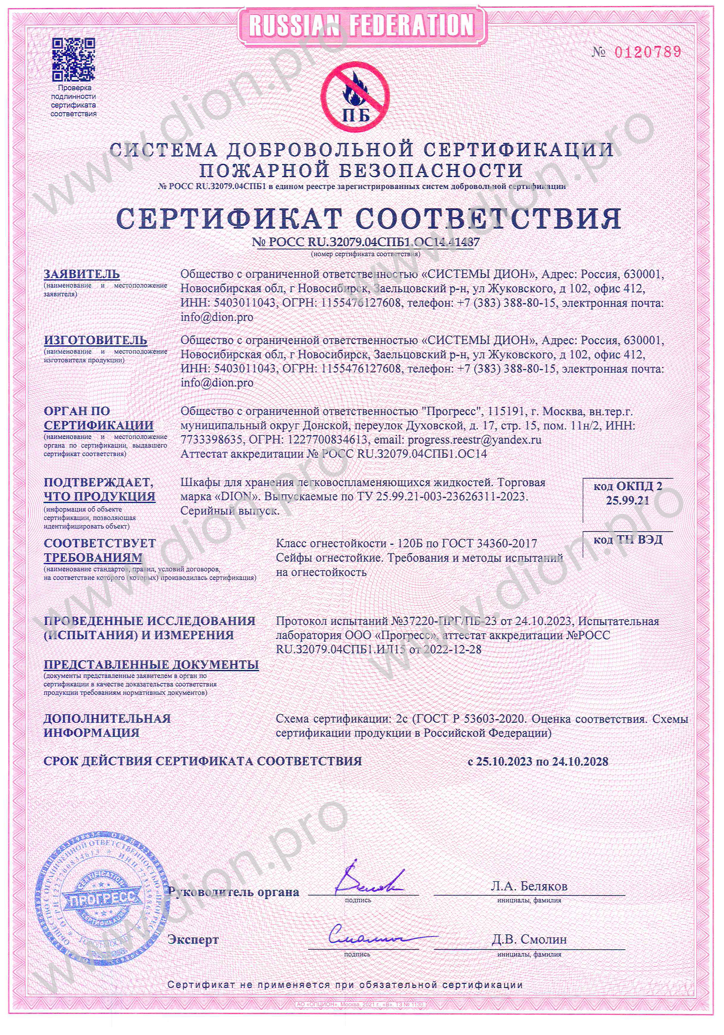Шкафы для хранения ЛВЖ от DION это максимальная надежность и полное соответствие требованиям пожарной безопасности. Класс огнестойкости 120Б подтвержден сертификатом противопожарной безопасности |