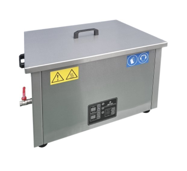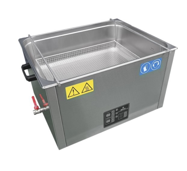 Установка кавитационной очистки предназначена для эксплуатации в широком спектре производств и лабораторий, от учреждений здравоохранения до машиностроительных и ремонтных предприятий. Ультразвуковой генератор, оснащенный функцией автоподстройки частоты, регулирует мощность в диапазоне от 30% до 100%, что позволяет справляться практически со всеми видами загрязнений. Автоматически стабилизируемая рабочая частота в 35 кГц исключает негативное воздействие ультразвука на большинство материалов обрабатываемых изделий. Объем технологической ёмкости ультразвуковой ванны «Град 560-35» составляет 56 литров, при размерах 610(Д) х 505(Ш)х200(В) мм. Очищаемые детали загружаются в корзину, подвешиваемую на борта ёмкости. Корзина изготавливается из нержавеющей стали и входит в комплект поставки. По желанию заказчика может быть дополнительно изготовлена и уникальная оснастка, предназначенная для закрепления обрабатываемых изделий. Материалом корпуса установки, ёмкости и крышки также служит нержавеющая сталь. Габариты УЗВ 710(Д)х550(Ш)х380(В) мм, сухой вес 40 кг.