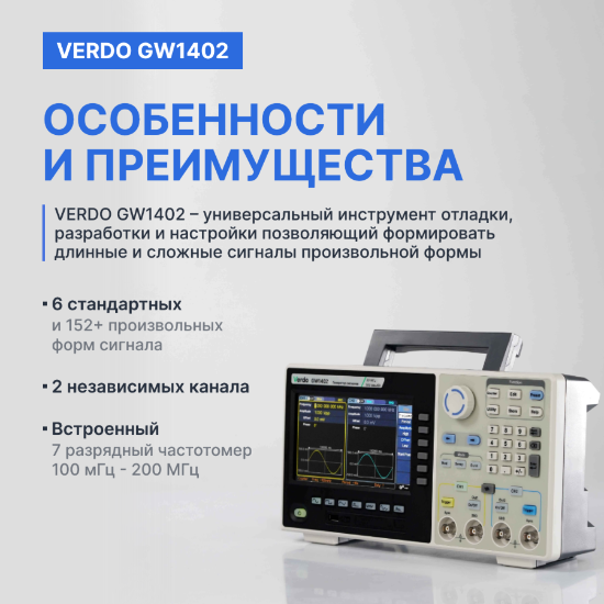 2-канальный генератор сигналов произвольной формы GW1402 - универсальный инструмент отладки, разработки и настройки инженера-электронщика.