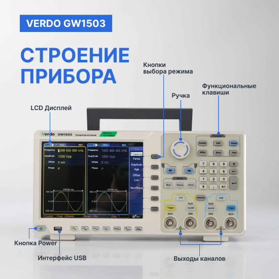 2-канальный генератор сигналов произвольной формы GW1503 - универсальный инструмент отладки, разработки и настройки инженера-электронщика.