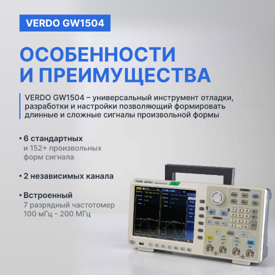 2-канальный генератор сигналов произвольной формы GW1504 - универсальный инструмент отладки, разработки и настройки инженера-электронщика.