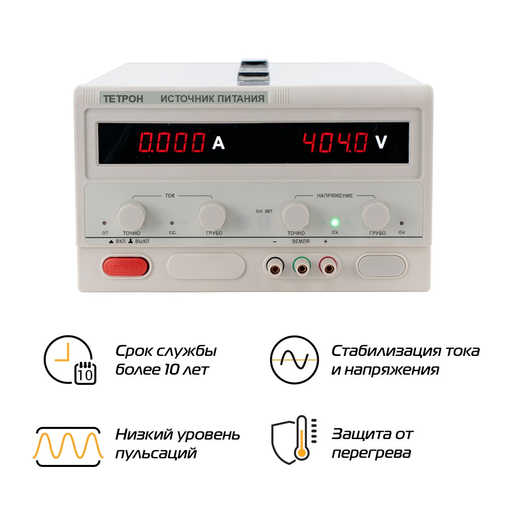 Лабораторный источник питания с высокой точностью установки параметров и низким уровнем пульсаций.